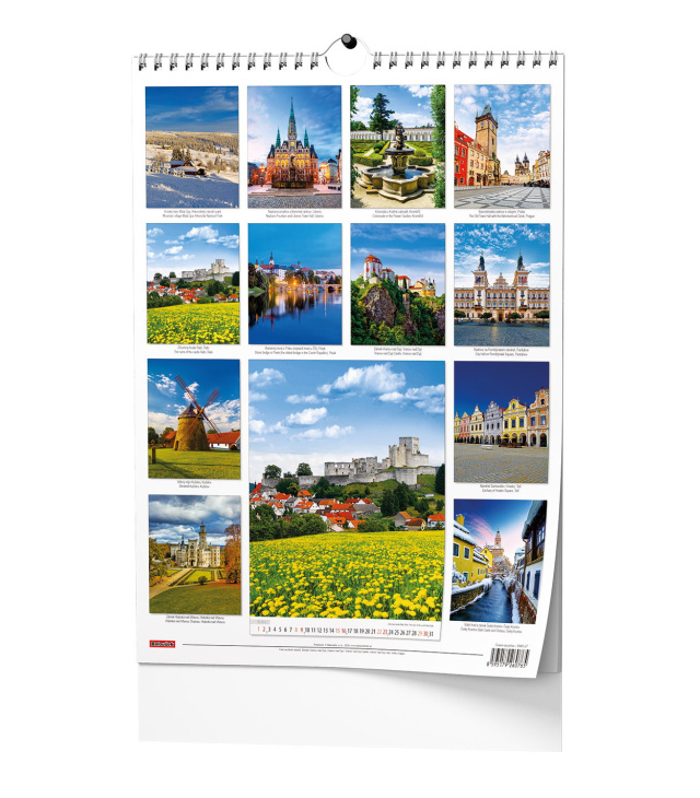 Nástěnný kalendář Česká republika - A3 2027, Nástěnný kalendář s obrázky známých míst v České republice. Kalendárium obsahuje číslování týdnů. s kalendáriem Mezinárodní měsíční / international monthly / international monatlich