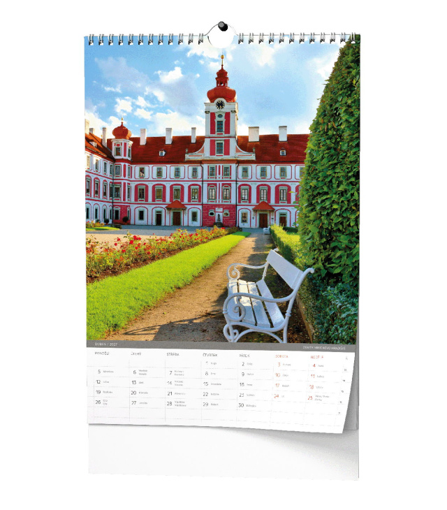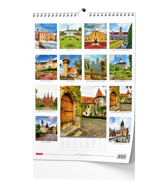 Nástěnný kalendář Hrady a zámky České republiky 2027, Kalendárium: poznámkové, jmenné kalendárium se státními svátky; Popis: Nástěnný kalendář s obrázky hradů a zámků naší země. s kalendáriem České měsíční jmenné / monthly CZ with CZ names / monatlich CZ mit dem CZ Namen