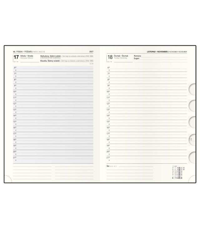 Kalendárium: CZ, SK, EN, DE; české a slovenské denní jmenné, sobota a neděle zvlášť na stránce /CZ + SK daily/CZ + SK täglich