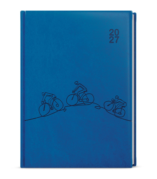 Diář denní A5 - David - Vivella s ražbou - jasně modrá - Kolo 2027, Kalendárium: časové rozmezí 6:00 - 21:30, měsíční fáze, roční období, letní a zimní čas, znamení zvěrokruhu, odpočet dnů, měsíční tabulkový přehled, dny a měsíce v jazycích - CS, SK, EN, DE, mezinárodní svátky: CZ, SK, A, D, PL, H, GB, E, F, I, UA, místo na poznámky; Informační stránky: osobní údaje, přehledný kalendář aktuálního roku a následujícího roku, měsíční plánování aktuálního roku, plán dovolených aktuálního roku, přehled státních svátků a významných dnů CZ/SK, jmenný seznam CZ/SK, daňový kalendář CZ/SK aktuálního roku, mezinárodní svátky, důležitá telefonní čísla, roční plánovací kalendář CZ/SK aktuálního roku, místo pro poznámky, mapa CZ/SK, zadní předsádka - kapsa; Popis: Denní diář A5 vyrobený z měkkého hladkého materiálu v modré barvě s motivem Kola. Díky formátu a velkému prostoru si můžete efektivně plánovat každý den. s kalendáriem CZ, SK, EN, DE; české a slovenské denní jmenné /CZ + SK daily/CZ + SK täglich