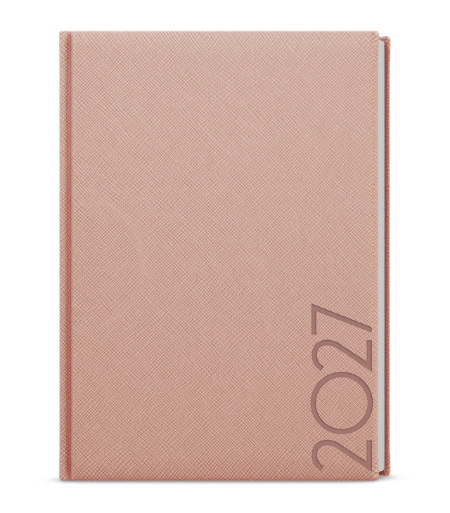 Diář denní A5 - David - Tora - pudrová 2027, Kalendárium: časové rozmezí 6:00 - 21:30, měsíční fáze, roční období, letní a zimní čas, znamení zvěrokruhu, odpočet dnů, měsíční tabulkový přehled, dny a měsíce v jazycích - CS, SK, EN, DE, mezinárodní svátky: CZ, SK, A, D, PL, H, GB, E, F, I, UA, místo na poznámky; Informační stránky: osobní údaje, přehledný kalendář aktuálního roku a následujícího roku, měsíční plánování aktuálního roku, plán dovolených aktuálního roku, přehled státních svátků a významných dnů CZ/SK, jmenný seznam CZ/SK, daňový kalendář CZ/SK aktuálního roku, mezinárodní svátky, důležitá telefonní čísla, roční plánovací kalendář CZ/SK aktuálního roku, místo pro poznámky, mapa CZ/SK, zadní předsádka - kapsa; Popis: Neobyčejný denní diář s lesklým povrchem ze strukturovaného materiálu v pudrové barvě je vyráběný ve formátu A5 a má velký prostor pro poznámky a plánování. s kalendáriem CZ, SK, EN, DE; české a slovenské denní jmenné /CZ + SK daily/CZ + SK täglich