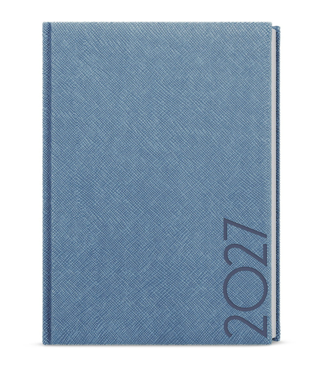 Diář denní A5 - David - Tora - modrošedá - modrá 2027, Kalendárium: časové rozmezí 6:00 - 21:30, měsíční fáze, roční období, letní a zimní čas, znamení zvěrokruhu, odpočet dnů, měsíční tabulkový přehled, dny a měsíce v jazycích - CS, SK, EN, DE, mezinárodní svátky: CZ, SK, A, D, PL, H, GB, E, F, I, UA, místo na poznámky; Informační stránky: osobní údaje, přehledný kalendář aktuálního roku a následujícího roku, měsíční plánování aktuálního roku, plán dovolených aktuálního roku, přehled státních svátků a významných dnů CZ/SK, jmenný seznam CZ/SK, daňový kalendář CZ/SK aktuálního roku, mezinárodní svátky, důležitá telefonní čísla, roční plánovací kalendář CZ/SK aktuálního roku, místo pro poznámky, mapa CZ/SK, zadní předsádka - kapsa; Popis: Neobyčejný denní diář s lesklým povrchem ze strukturovaného materiálu v modrošedé barvě je vyráběný ve formátu A5 a má velký prostor pro poznámky a plánování. s kalendáriem CZ, SK, EN, DE; české a slovenské denní jmenné /CZ + SK daily/CZ + SK täglich