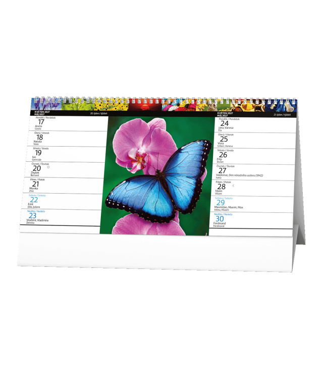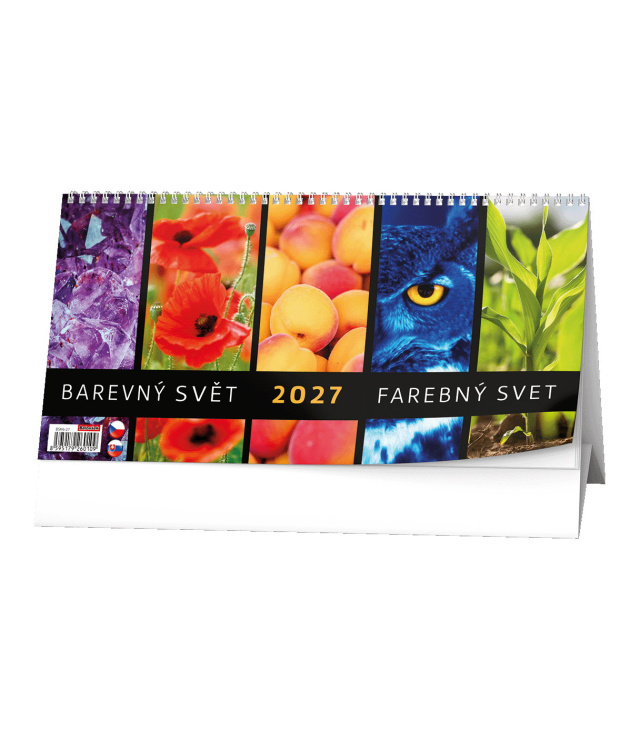 Stolní kalendář Barevný svět - 14denní 2027, Kalendárium: měsíční fáze, roční období, letní a zimní čas; Informační stránky: státní svátky a významné dny CZ/SK, tabulkový kalendář aktuálního roku, místo na poznámky; Popis: Stolní kalendář se čtrnáctidenním kalendáriem a pestrobarevnými motivy. s kalendáriem České + slovenské čtrnáctidenní jmenné /CZ+ SK biweekly/CZ+SK zweiwochentlich