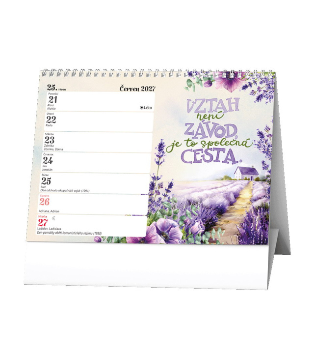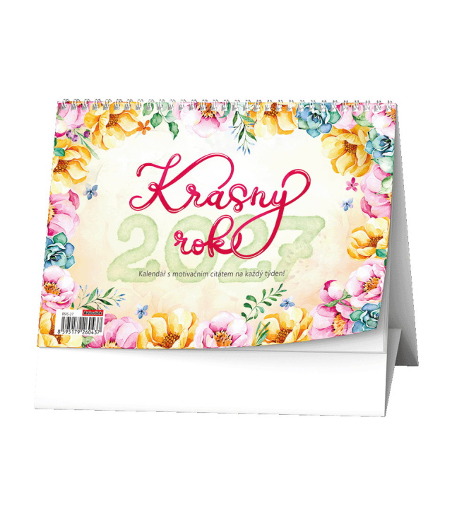 Stolní kalendář Krásný rok (s citátem na každý týden) 2027, Kalendárium: měsíční fáze, roční období, letní a zimní čas, citát - moudro na každý den; Informační stránky: státní svátky, ostatní svátky a významné dny, tabulkový kalendář aktuálního a následujícího roku, místo na poznámky; Popis: Stolní týdenní kalendář s krásnou grafikou a citáty na každý týden. s kalendáriem České týdenní jmenné /CZ weekly/CZ wöchentlich