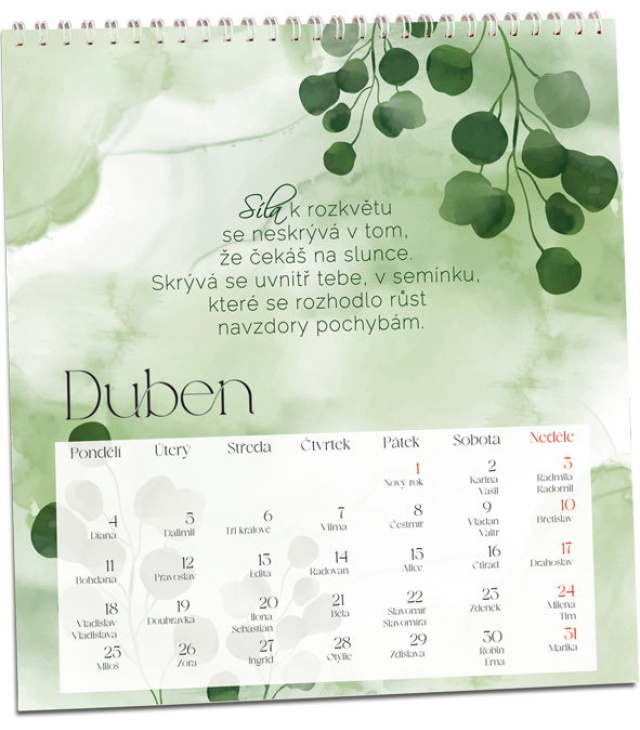 Kalendárium: české měsíční jmenné kalendárium / CZ monthly with CZ names / CZ monatlich mit CZ Namen