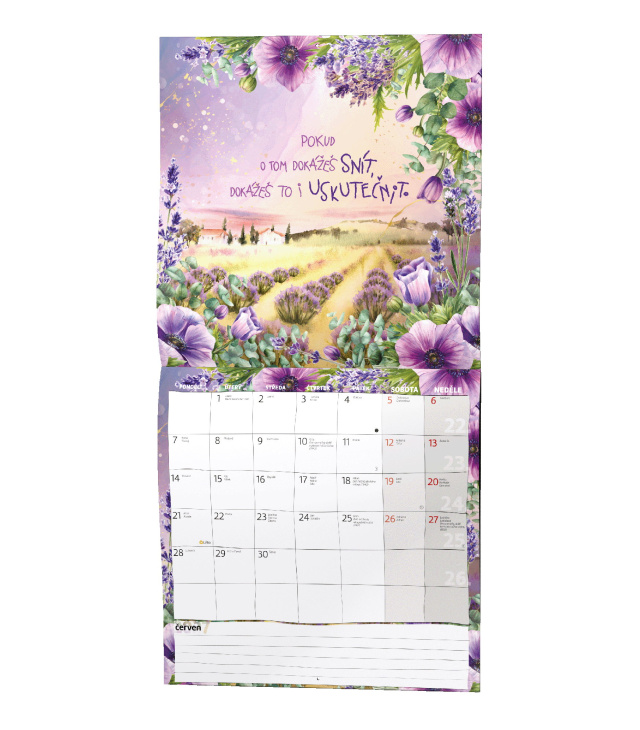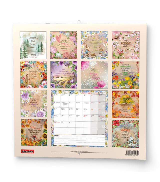 Nástěnný kalendář poznámkový Krásný rok 2027, Kalendárium: poznámkové kalendárium se státními svátky, měsíční fáze, roční období, letní a zimní čas, místo na poznámky, citát na každý měsíc; Informační stránky: tabulkový kalendář aktuálního roku a následujícího roku, místo na poznámky; Popis: Nástěnný plánovací klalendář s citátem na každý měsíc s moderní grafikou. s kalendáriem České měsíční jmenné / monthly CZ with CZ names / monatlich CZ mit dem CZ Namen