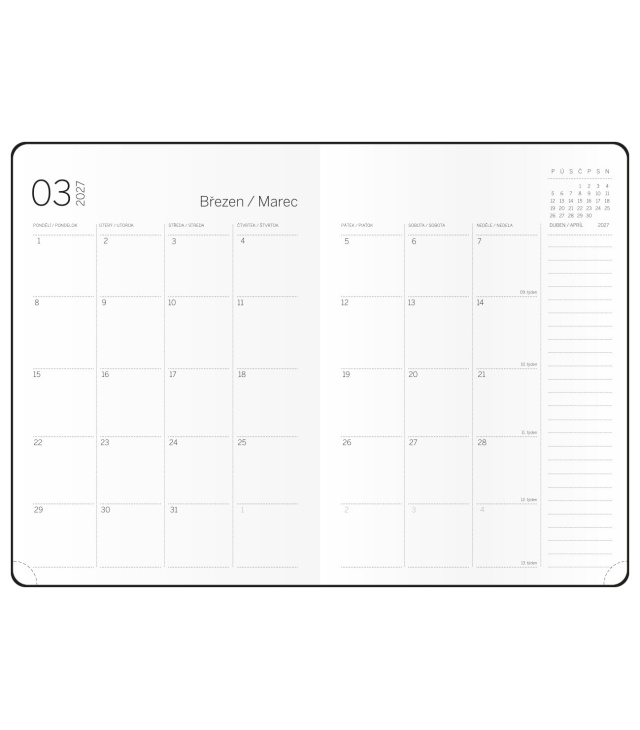 Diář měsíční B5 s notesem - DiNo - písková 2027, Kalendárium: měsíční kalendárium, celkem 80 stran diáře, za každým měsícem navíc prostor na poznámky - 60 stran linek a 20 stran prázdných; Informační stránky: přehledný kalendář aktuálního roku a následujícího roku, měsíční plánování aktuálního roku, měsíční kalendárium s poznámkami, linkovaný a prázdný blok ; Popis: V8, měkké desky, potah NUBA, jemný materiál - imitace semiše, rovný hřbet, kulaté rohy bez kapitálku, 2x saténová stužka, 1x ražba roku, Unikátní měsíční diář s poznámkovým notesem. Na předních stranách tohoto managerského diáře můžete využít přehledné měsíční kalendárium a na zbývajících stranách na Vás čeká linkovaný i prázdný blok na Vaše poznámky. s kalendáriem CZ, SK; české a slovenské měsíční/CZ + SK monthly/CZ + SK monatlich