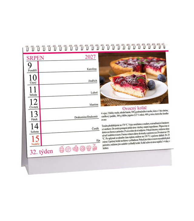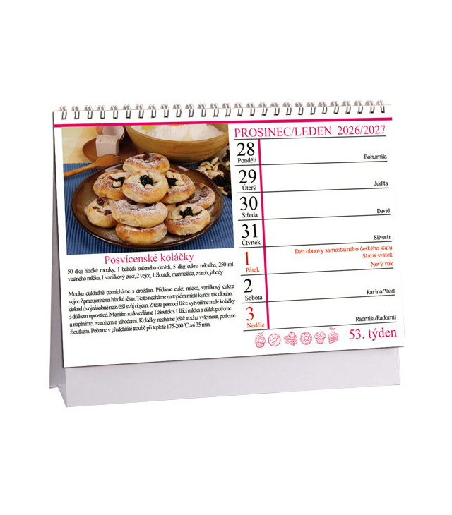 Stolní kalendář Sladké mlsání 2027, Kalendář obsahuje: fáze měsíce; seznam jmen, plánovací kalendář 2027, poznámky, tabulkové kalendáře 2027 a 2028., české týdenní řádkové / CZ weekly / CZ wöchentlich