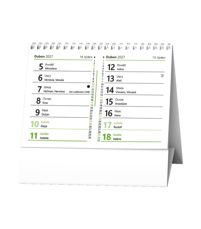Stolní kalendář Lemon - 14denní 2027, Kalendárium: měsíční fáze, roční období, letní a zimní čas, řádkový přehled 2 měsíců; Informační stránky: státní svátky, ostatní svátky a významné dny a ostatní významné dny, tabulkový kalendář aktuálního a následujícího roku, plánovací kalendář aktuálního roku, místo pro poznámky; Popis: Praktický stolní kalendář se čtrnáctidenním kalendáriem. Malý formát a veselý motiv oživí Váš den. s kalendáriem České čtrnáctidenní jmenné / CZ biweekly / CZ zweiwochentlich