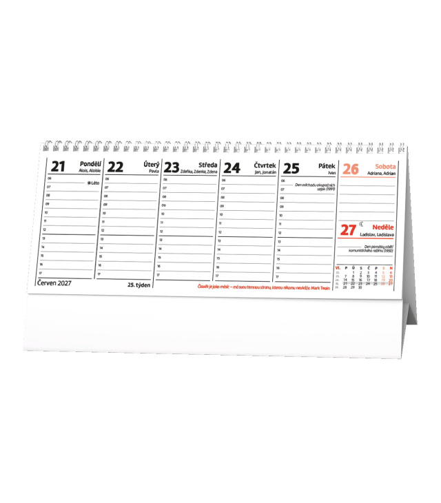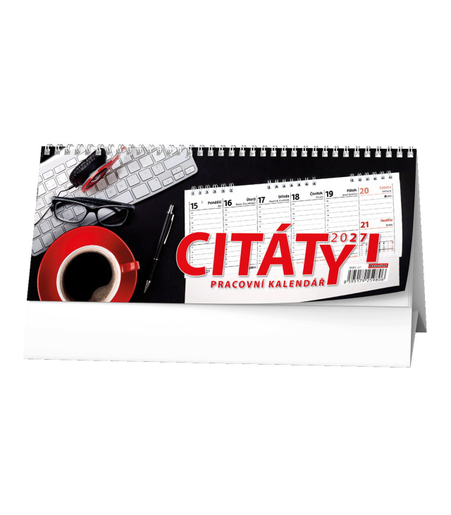 Stolní kalendář Pracovní kalendář CITÁTY I 2027, Kalendárium: měsíční fáze, roční období, letní a zimní čas, citát na každý týden, časové plánování; Informační stránky: tabulkový kalendář aktuálního a následujícího roku, plánovací kalendář aktuálního roku, místo na poznámky; Popis: Pracovní kalendář s citáty na každý týden. V menším formátu a s týdenním kalendáriem bude Vašim praktickým pomocníkem. s kalendáriem České týdenní jmenné /CZ weekly/CZ wöchentlich