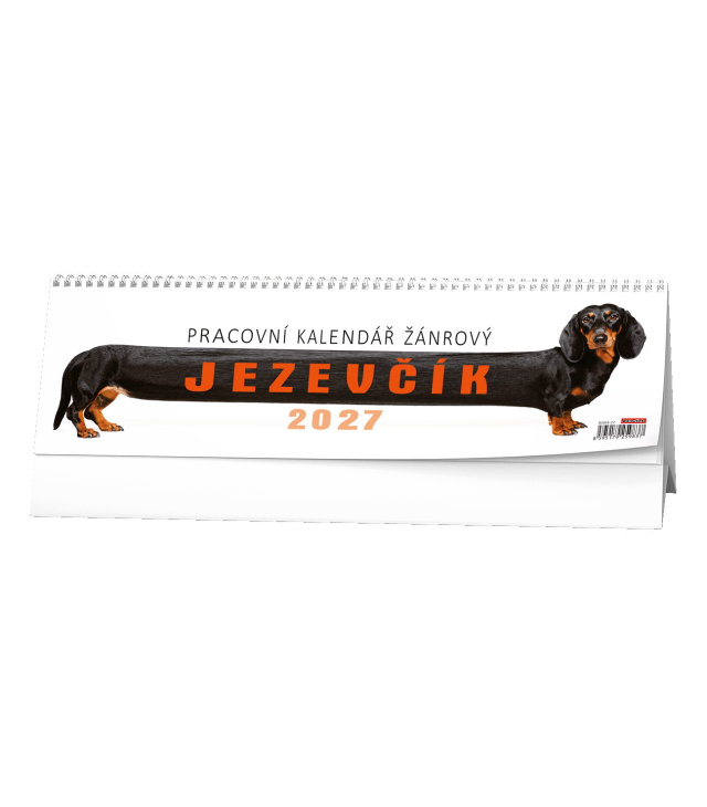 Stolní kalendář Pracovní kalendář ŽÁNROVÝ - Jezevčík 2027, Kalendárium: měsíční fáze, roční období, letní a zimní čas, tabulkový přehled 3 měsíců, obrázek, časové plánování; Informační stránky: státní svátky, ostatní svátky a významné dny, tabulkový kalendář následujícího roku, plánovací kalendář aktuálního roku, místo na poznámky; Popis: Pracovní kalendář s týdenním kalendáriem v zajímavém formátu a s vtipnými obrázky oživí Váš stůl. s kalendáriem České týdenní jmenné /CZ weekly/CZ wöchentlich
