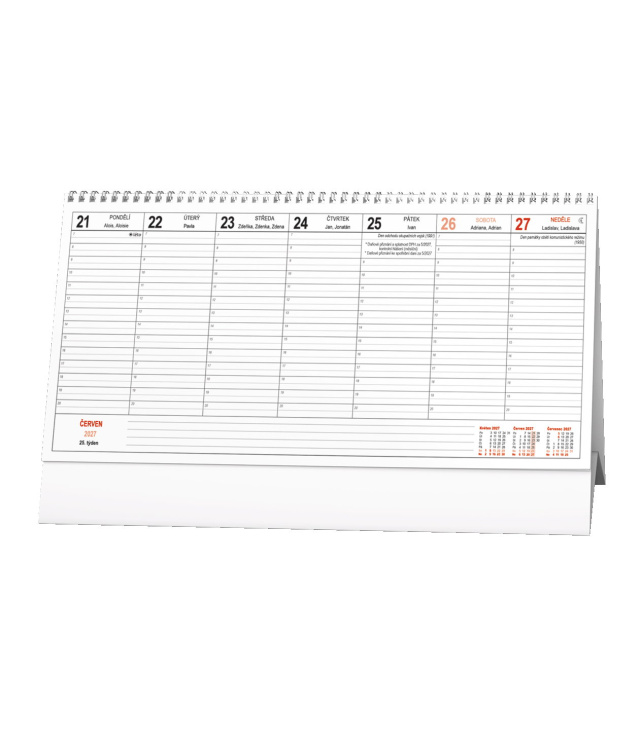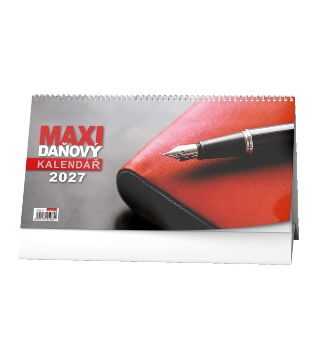 Stolní kalendář MAXI daňový kalendář 2027, Kalendárium: měsíční fáze, roční období, letní a zimní čas, daňové termíny CZ, místo na poznámky, tabulkový přehled 3 měsíce, časové plánování; Informační stránky: státní svátky, ostatní svátky a významné dny, tabulkový kalendář aktuálního a nadcházejícího roku, plánovací kalendář aktuálního roku, přehled daňových povinností, místo na poznámky ; Popis: Tradice v maxi designu. Velký kalendář s týdenním kalendáriem pro plánování Vašich daní. s kalendáriem České týdenní jmenné /CZ weekly/CZ wöchentlich