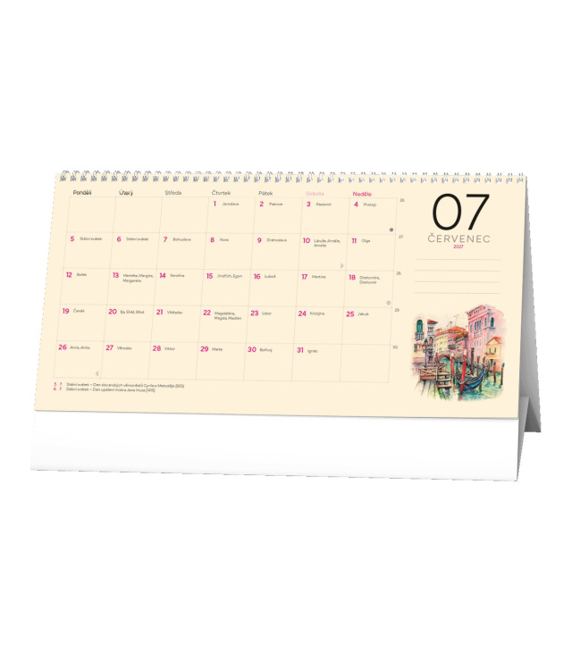 Stolní kalendář Měsíční kalendář (měsíční kalendárium) 2027, Kalendárium: měsíční fáze, roční období, letní a zimní čas, místo na poznámky, poznámkové kalendárium, ; Informační stránky: státní svátky a významné dny, místo pro poznámky, tabulkový kalendář aktuálního a následujícího roku, místo na poznámky; Popis: Výjimečný stolní kalendář s měsíčním kalendáriem, laděný do jemných barevných tónů s prostorem pro poznámky a plánování. s kalendáriem České měsíční jmenné /CZ monthly/CZ monatlich