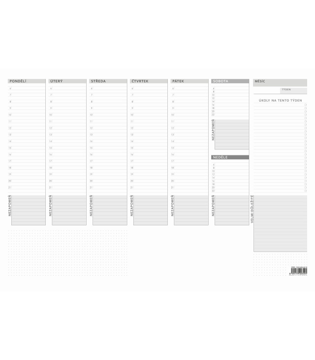 Týdenní univerzální nedatované / weekly undated / wöchentlich undatiert