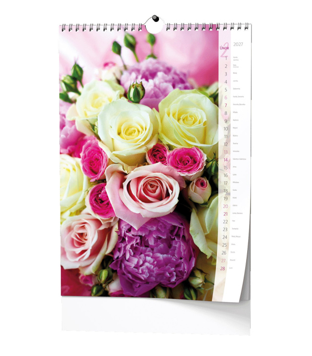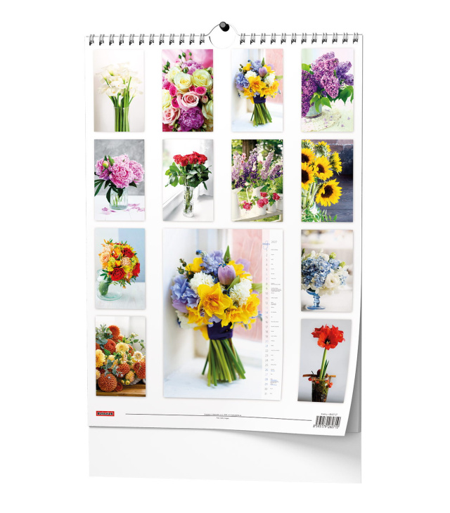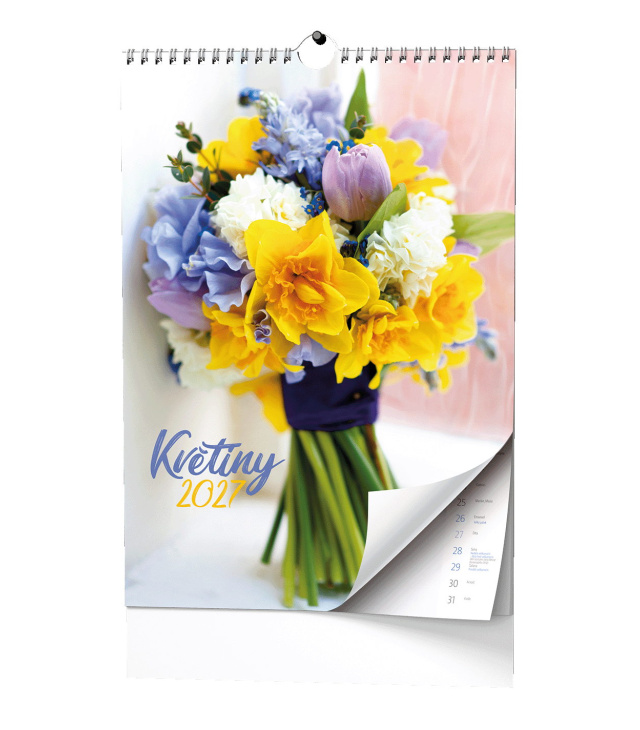 Nástěnný kalendář Květiny - A3 2027, Kalendárium: jmenné kalendárium se státními svátky; Popis: Nástěnný kalendář s obrázky barevných kytic a květů. s kalendáriem České měsíční jmenné / monthly CZ with CZ names / monatlich CZ mit dem CZ Namen