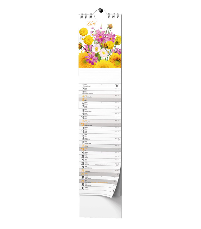 Nástěnný kalendář Kravata - Kytice - vázanka 2027, Kalendárium: měsíční fáze, roční období, letní a zimní čas, východy a západy slunce, znamení zvěrokruhu, místo pro poznámky; Popis: Netradiční nástěnný kalendář ve formátu kravaty s působivými obrázky kytic. s kalendáriem České měsíční jmenné / monthly CZ with CZ names / monatlich CZ mit dem CZ Namen