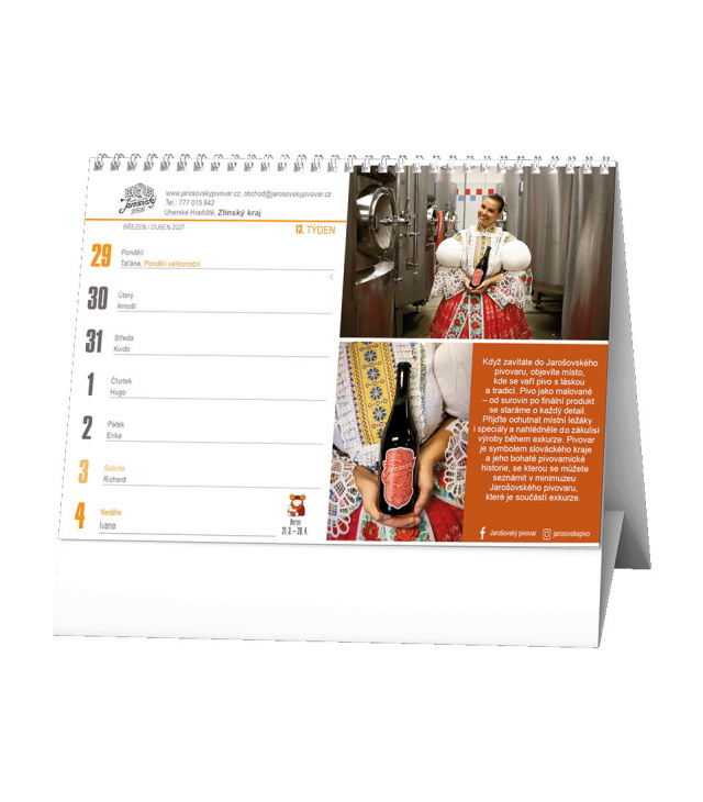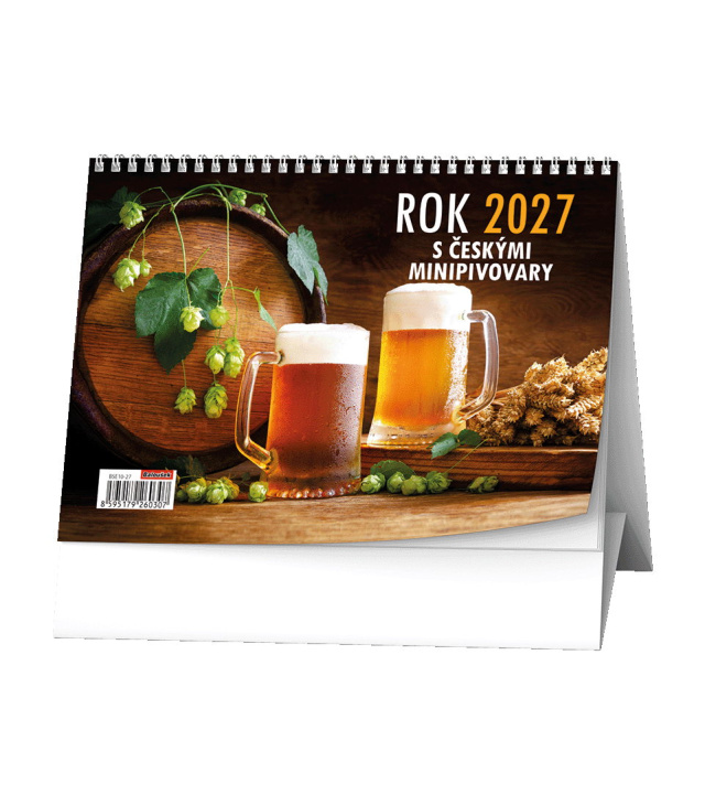 Stolní kalendář Rok 2027 s českými minipivovary 2027, Kalendárium: měsíční fáze, roční období, letní a zimní čas, znamení zvěrokruhu, informace o pivech a pivovarech; Informační stránky: státní svátky, ostatní svátky a významné dny, tabulkový kalendář aktuálního a následujícího roku, místo na poznámky; Popis: Stolní týdenní kalendář pro všechny milovníky netradičních piv z našich českým minipivovarů. s kalendáriem České týdenní jmenné /CZ weekly/CZ wöchentlich