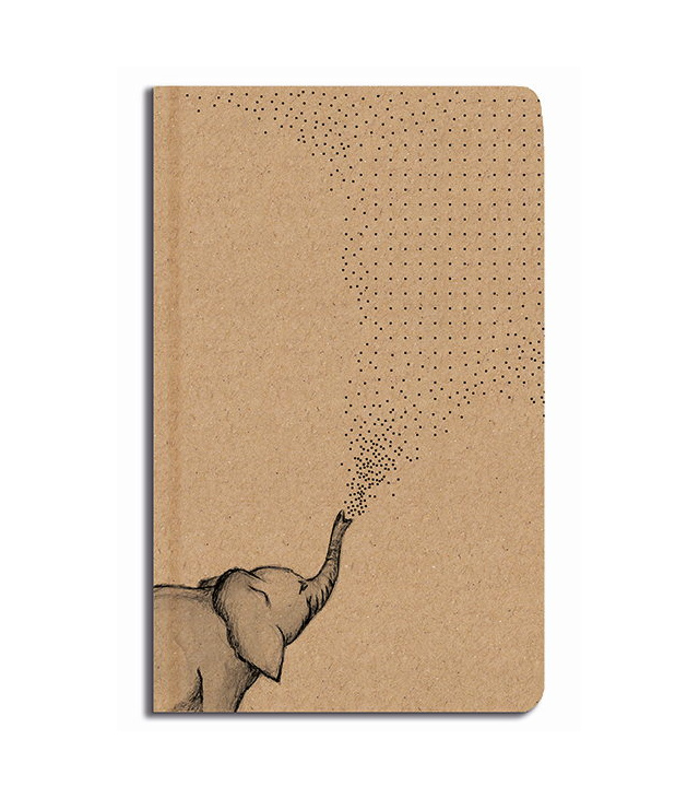 Notes tečkovaný - A5 - kraft - slon, Notes A5 s originální grafikou na kraftové obálce. Uvnitř bytelného notesu je tečkovaný blok se stužkou vhodný pro příznivce psaní i malování. Tečkovaná lineatura pro kreativce. Už jej nebudete chtít dát z ruky!