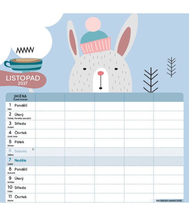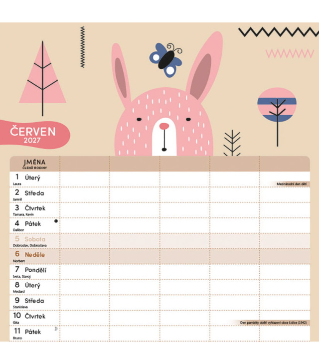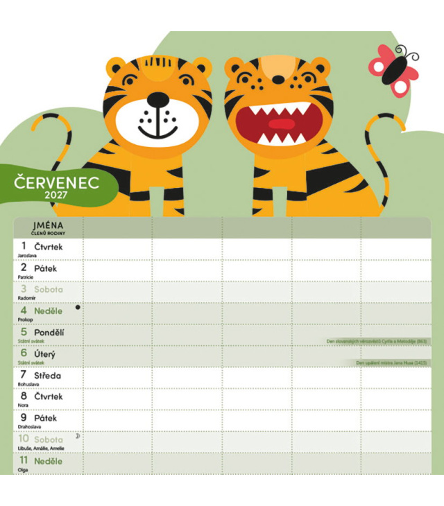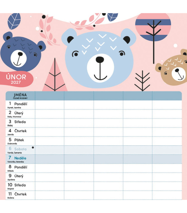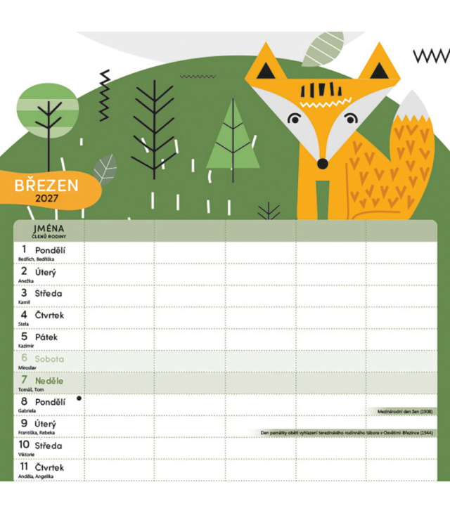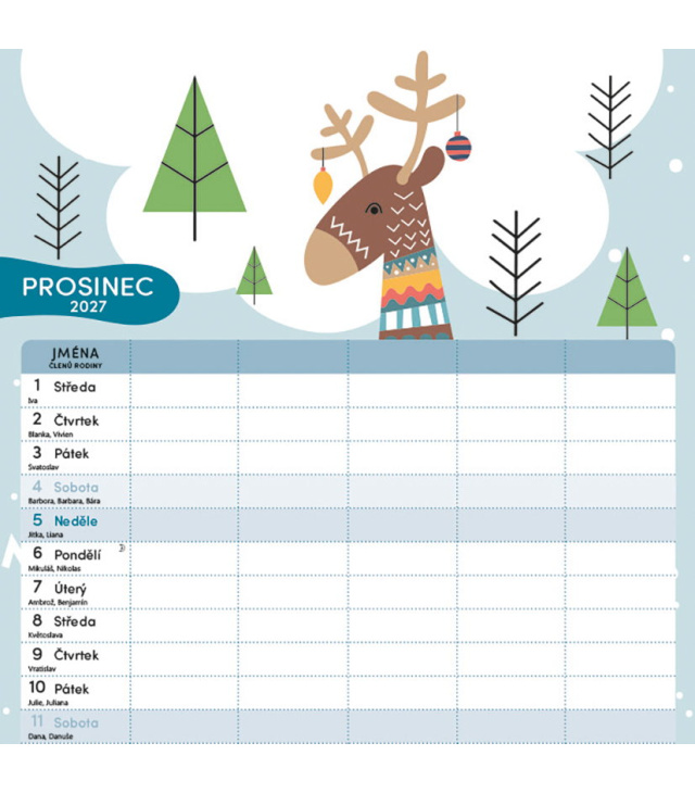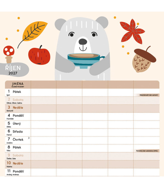 Nástěnný kalendář poznámkový Rodinný plánovací kalendář 2027, Kalendárium: poznámkové kalendárium se státními svátky, měsíční fáze, roční období, letní a zimní čas, místo na poznámky pro členy rodiny; Informační stránky: tabulkový kalendář aktuálního a následujícího roku, místo na poznámky, rozvrh hodin; Popis: Přehledný nástěnný kalendář pro to správné rodinné plánování. s kalendáriem České měsíční jmenné / monthly CZ with CZ names / monatlich CZ mit dem CZ Namen