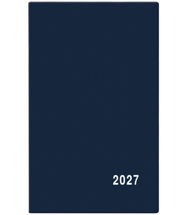 Diář kapesní čtrnáctidenní - Alois - PVC - modrá 2027, Kalendárium: měsíční fáze, roční období, letní a zimní čas, tabulkový přehled 2 měsíců; Informační stránky: osobní záznamy, důležitá telefonní čísla, čtvrtletní plánovací kalendář aktuálního roku, tabulkový kalendář následujícího roku, jmenný seznam, místo na poznámky, roční plánovací kalendář aktuálního roku; Popis: Jednoduchý a praktický týdenní diář vyrobený z jemného hladkého materiálu s polomatným povrchem modré barvy. Ideální pro každého, kdo si oblíbil měkkou šitou vazbu. s kalendáriem České čtrnáctidenní jmenné / CZ biweekly / CZ zweiwochentlich