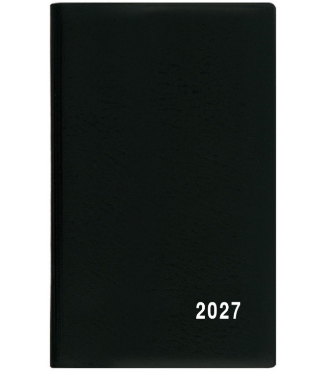 Diář kapesní čtrnáctidenní - Alois - PVC - černá 2027, Kalendárium: měsíční fáze, roční období, letní a zimní čas, tabulkový přehled 2 měsíců; Informační stránky: osobní záznamy, důležitá telefonní čísla, čtvrtletní plánovací kalendář aktuálního roku, tabulkový kalendář následujícího roku, jmenný seznam, místo na poznámky, roční plánovací kalendář aktuálního roku; Popis: Jednoduchý a praktický týdenní diář vyrobený z jemného hladkého materiálu s polomatným povrchem černé barvy. Ideální pro každého, kdo si oblíbil měkkou šitou vazbu. s kalendáriem České čtrnáctidenní jmenné / CZ biweekly / CZ zweiwochentlich