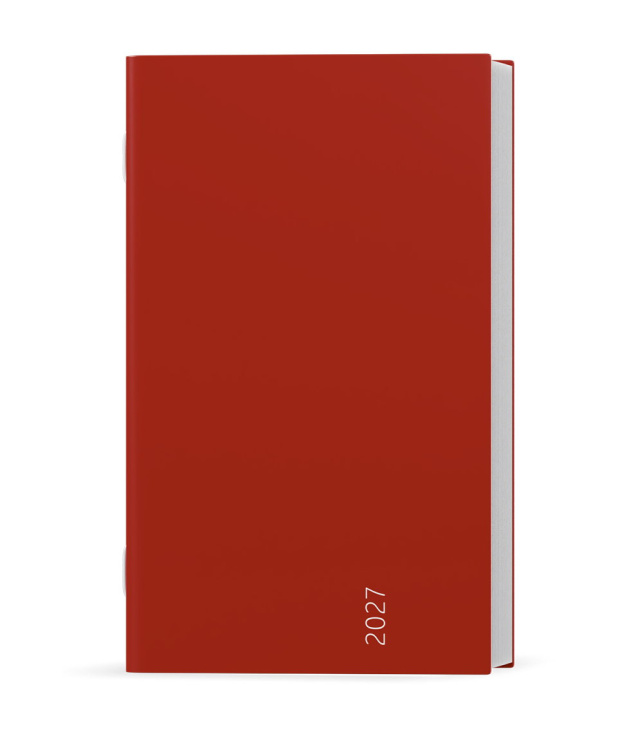 Diář kapesní čtrnáctidenní - Alois - COLOR - PVC - Cihlová - červená 2027, Kalendárium: měsíční fáze, roční období, letní a zimní čas, tabulkový přehled 2 měsíců; Informační stránky: osobní záznamy, důležitá telefonní čísla, čtvrtletní plánovací kalendář aktuálního roku, tabulkový kalendář následujícího roku, jmenný seznam, místo na poznámky, roční plánovací kalendář aktuálního roku; Popis: Jednoduchý a praktický týdenní diář z hladkého matného materiálu. Ideální pro každého, kdo si oblíbil měkkou šitou vazbu. s kalendáriem České čtrnáctidenní jmenné / CZ biweekly / CZ zweiwochentlich