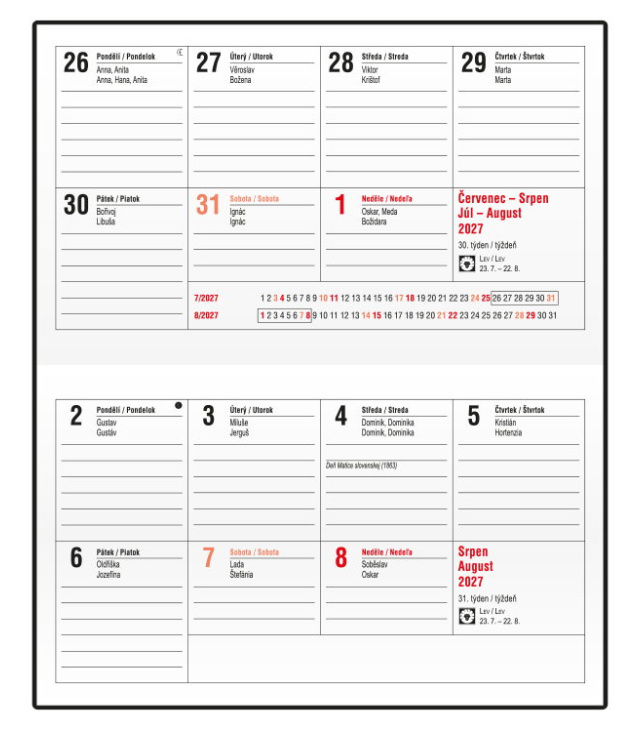 Kalendárium: České a slovenské čtrnáctidenní jmenné / CZ + SK biweekly / CZ + SK zweiwochentlich