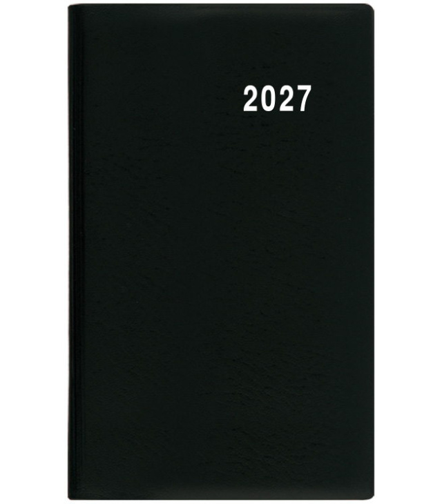 Diář kapesní čtrnáctidenní - Gustav - PVC - černá 2027, Kalendárium: měsíční fáze, roční období, letní a zimní čas, řádkový přehled 2 měsíců; Informační stránky: osobní záznamy, čtvrtletní plánovací kalendář aktuálního roku, tabulkový kalendář následujícího roku, místo na poznámky; Popis: Jednoduchý a praktický týdenní diář vyrobený z jemného hladkého materiálu s polomatným povrchem černé barvy. Ideální pro každého, kdo si oblíbil měkkou šitou vazbu. s kalendáriem České čtrnáctidenní jmenné / CZ biweekly / CZ zweiwochentlich