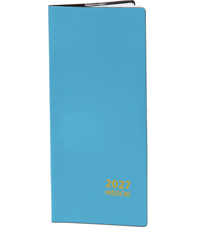 Diář kapesní měsíční PVC - modrá 2027, Diář obsahuje: měsíční kalendárium, fáze měsíce; plánovací kalendář 2027, tabulkové kalendáře 2027 a 2028, poznámky., CZ jmenné měsíční / CZ monthly / CZ monatlich