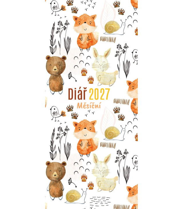 Diář kapesní měsíční lamino - Zvířátka 2027, Diář obsahuje: měsíční kalendárium, fáze měsíce; plánovací kalendář 2027, tabulkové kalendáře 2027 a 2028, poznámky., CZ jmenné měsíční / CZ monthly / CZ monatlich