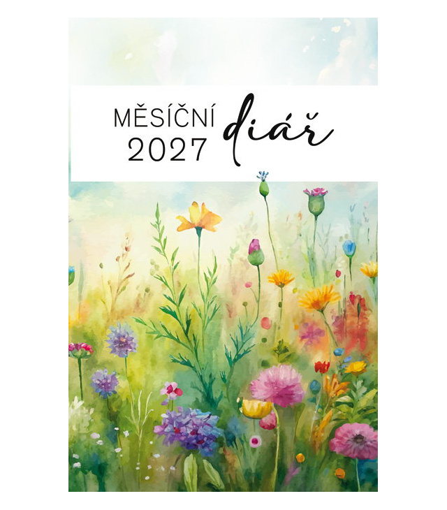 Diář kapesní měsíční lamino - MINI - Louka 2027, Diář obsahuje: měsíční kalendárium, fáze měsíce; plánovací kalendář 2027, tabulkové kalendáře 2027 a 2028, poznámky., CZ jmenné měsíční / CZ monthly / CZ monatlich