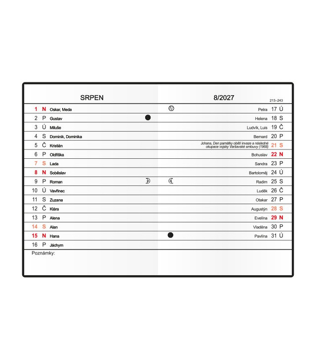 Kalendárium: České měsíční jmenné / monthly CZ with CZ names / monatlich CZ mit dem CZ Namen