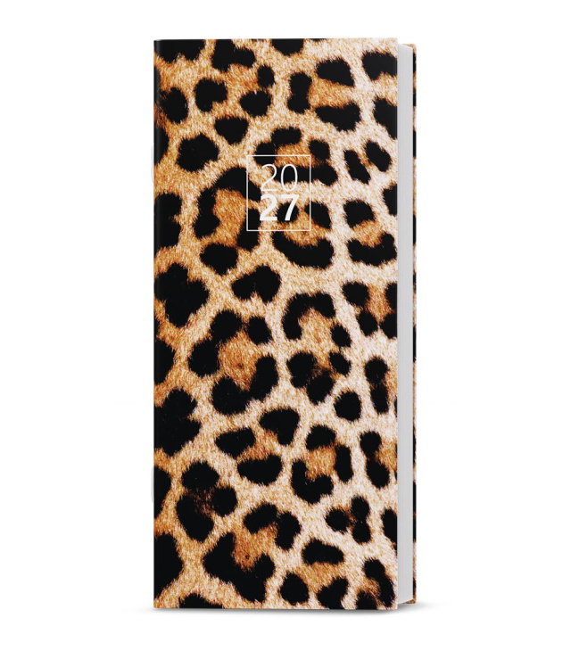 Diář kapesní měsíční - Božka - Lamino - Leopard 2027, Kalendárium: časové rozmezí 7:00 - 17:00, měsíční fáze, roční období, letní a zimní čas, počet dnů; Informační stránky: osobní záznamy, důležitá telefonní čísla, roční plánovací kalendář aktuálního roku, tabulkový kalendář aktuálního a následujícího roku, jmenný seznam, adresář; Popis: Jednoduchý a praktický měsíční diář z jemného matného materiálu s moderním motivem. Ideální pro každého, kdo si oblíbil měkkou šitou vazbu. s kalendáriem České měsíční jmenné / monthly CZ with CZ names / monatlich CZ mit dem CZ Namen