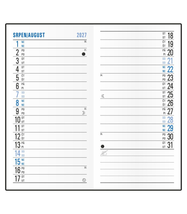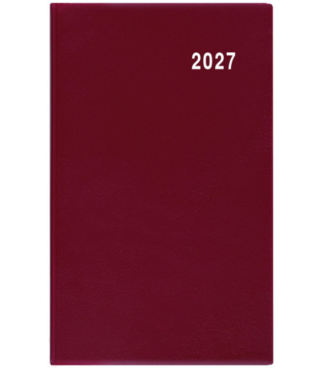 Diář kapesní měsíční - Diana - PVC - bordó 2027, Kalendárium: měsíční fáze, roční období, letní a zimní čas, místo na poznámky; Informační stránky: osobní záznamy, důležitá telefonní čísla, roční plánovací kalendář aktuálního roku CZ/SK, tabulkový kalendář následujícího roku CZ/SK, místo na poznámky; Popis: Jednoduchý a praktický měsíční diář vyrobený z jemného hladkého materiálu s polomatným povrchem v barvě bordó. Ideální pro každého, kdo si oblíbil měkkou šitou vazbu. s kalendáriem České a slovenské měsíční jmenné / monthly CZ + SK with names / monatlich CZ + SK mit dem Namen