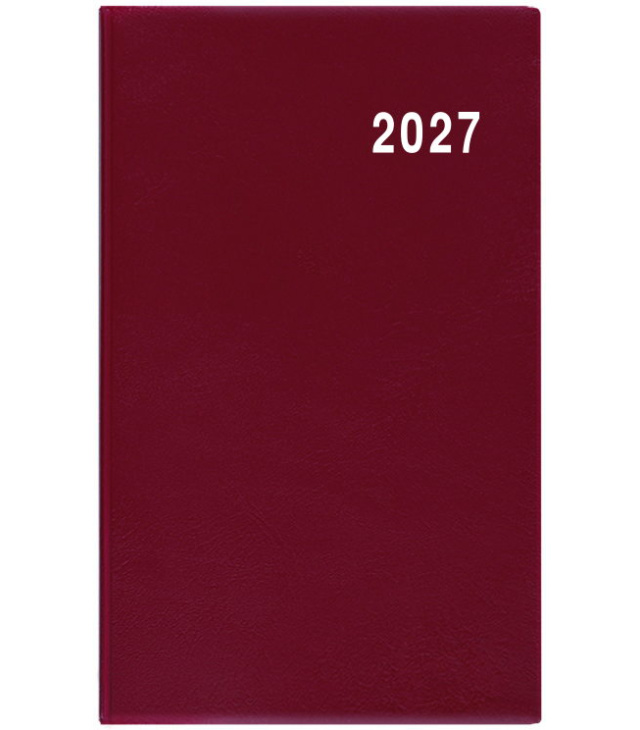 Diář kapesní měsíční - Marika - PVC - bordó 2027, Kalendárium: roční období, letní a zimní čas, počet dnů; Informační stránky: osobní záznamy, důležitá telefonní čísla, tabulkový kalendář aktuálního roku, roční plánovací kalendář aktuálního roku, jmenný seznam, adresář, místo na zapsání odjezdů a příjezdů, velký prostor na poznámky; Popis: Jednoduchý a praktický měsíční diář vyrobený z jemného hladkého materiálu s polomatným povrchem v barvě bordó. Ideální pro každého, kdo si oblíbil měkkou šitou vazbu. s kalendáriem České měsíční jmenné / monthly CZ with CZ names / monatlich CZ mit dem CZ Namen