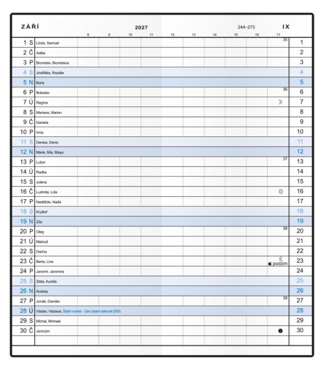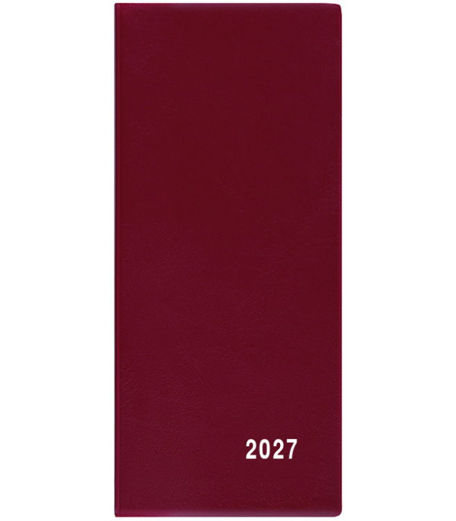 Diář kapesní měsíční - Xenie - PVC - bordó 2027, Kalendárium: časové rozmezí 8:00 - 17:00, měsíční fáze, roční období, letní a zimní čas, počet dnů; Informační stránky: osobní záznamy, tabulkový kalendář následujícího a aktuálního roku, roční plánovací kalendář aktuálního roku, přehled státních a ostatních svátků ČR, místo na poznámky; Popis: Jednoduchý a praktický měsíční diář vyrobený z jemného hladkého materiálu s polomatným povrchem v barvě bordó. Ideální pro každého, kdo si oblíbil měkkou šitou vazbu. s kalendáriem České měsíční jmenné / monthly CZ with CZ names / monatlich CZ mit dem CZ Namen