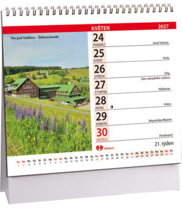 Stolní kalendář Krásy Čech a Moravy mini 2027, Kalendář obsahuje: fáze měsíce; seznam jmen, plánovací kalendář 2027, poznámky, tabulkové kalendáře 2027 a 2028., české týdenní řádkové / CZ weekly / CZ wöchentlich