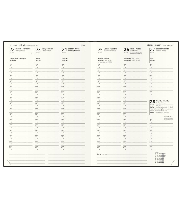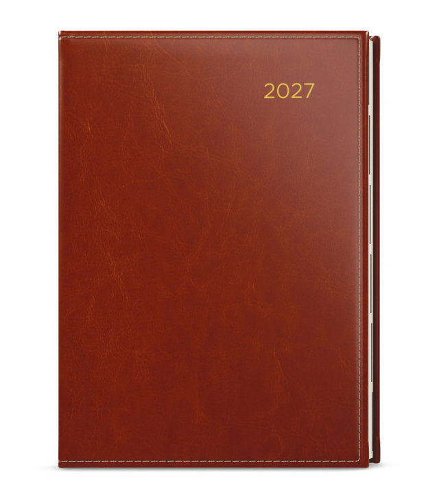 Diář týdenní A5 - Oskar - Premier - hnědá 2027, Kalendárium: časové rozmezí: 6:00 - 21:30, měsíční fáze, roční období, letní a zimní čas, znamení zvěrokruhu, odpočet dnů, měsíční tabulkový přehled, dny a měsíce v 4 jazycích - CS, SK, EN, DE, mezinárodní svátky: CZ, SK, A, D, PL, H, GB, E, F, I, UA, místo na poznámky; Informační stránky: osobní údaje, přehledný kalendář aktuálního roku a následujícího roku, měsíční plánování aktuálního roku, plán dovolených aktuálního roku, přehled státních svátků a významných dnů CZ/SK, jmenný seznam CZ/SK, daňový kalendář CZ/SK aktuálního roku, mezinárodní svátky, důležitá telefonní čísla, roční plánovací kalendář CZ/SK aktuálního roku, místo pro poznámky, mapa CZ/SK, zadní předsádka - kapsa; Popis: Týdenní diář vyrobený z hnědé koženky s moderní zlatou ražbou roku. Diář, který povýší jakoukoli Vaši schůzku. s kalendáriem CZ, SK, EN, DE; české a slovenské týdenní jmenné /CZ + SK weekly/CZ + SK wöchentlich