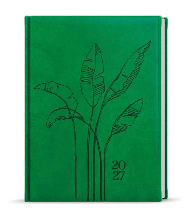 Diář týdenní B6 - Prokop - Vivella s ražbou - jasně zelená - Listy 2027, Kalendárium: měsíční fáze, roční období, letní a zimní čas, znamení zvěrokruhu, odpočet dnů, měsíční tabulkový přehled, dny a měsíce v jazycích - CS, SK, EN, DE, mezinárodní svátky: CZ, SK, A, D, PL, H, GB, E, F, I, UA; Informační stránky: osobní údaje, přehledný kalendář aktuálního roku a následujícího roku, měsíční plánování aktuálního roku, plán dovolených aktuálního roku, přehled státních svátků a významných dnů CZ/SK, jmenný seznam CZ/SK, mezinárodní svátky, daňový kalendář CZ/SK aktuálního roku, roční plánovací kalendář CZ/SK aktuálního roku, místo pro poznámky, zadní předsádka - kapsa; Popis: Týdenní diář v zelené vivelle s krásnou ražbou s motivem Listů. Diář v oblíbeném formátu s velkým prostorem pro poznámky a plánování. s kalendáriem CZ, SK, EN, DE; české a slovenské týdenní jmenné /CZ + SK weekly/CZ + SK wöchentlich