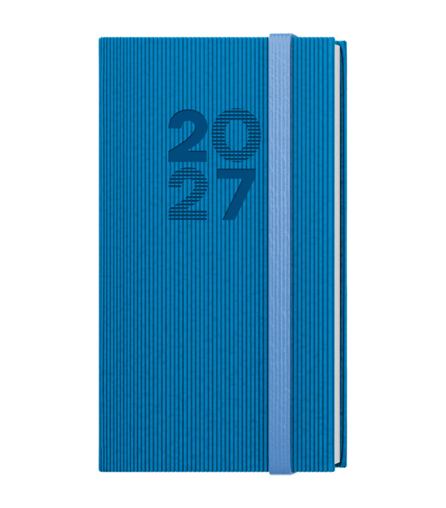 Diář týdenní kapesní -Jakub - Vigo - modrá, modrá 2027, Kalendárium: měsíční fáze, roční období, letní a zimní čas, znamení zvěrokruhu, řádkový přehled 2 měsíců, dny a měsíce v 4 jazycích - CS, SK, EN, DE, mezinárodní svátky: CZ, SK, A, D, PL, H, GB, E, F, I, UA; Informační stránky: osobní údaje, přehledný kalendář aktuálního roku a následujícího roku, měsíční plánování aktuálního roku, plán dovolených aktuálního roku, jmenný seznam CZ/SK, mezinárodní svátky, roční plánovací kalendář CZ aktuálního roku, místo pro poznámky; Popis: Kapesní týdenní diář v modré barvě ze strukturovaného materiálu a s gumičkou. Jednoduchost, která neomrzí. Moderní doplněk do každé kapsy. Diář má velký prostor pro poznámky a plánování. s kalendáriem CZ, SK, EN, DE; české a slovenské týdenní jmenné /CZ + SK weekly/CZ + SK wöchentlich