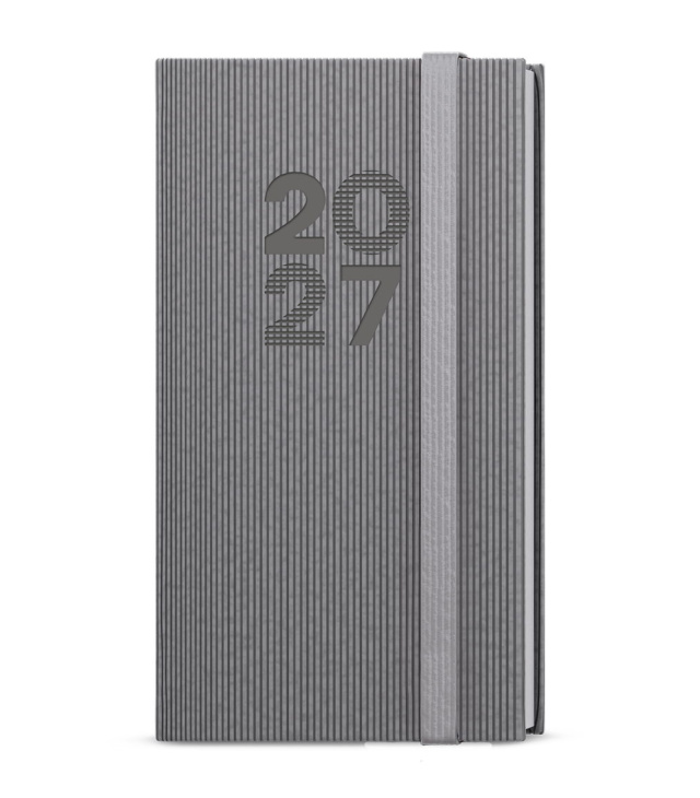 Diář týdenní kapesní -Jakub - Vigo - šedá, šedá 2027, Kalendárium: měsíční fáze, roční období, letní a zimní čas, znamení zvěrokruhu, řádkový přehled 2 měsíců, dny a měsíce v 4 jazycích - CS, SK, EN, DE, mezinárodní svátky: CZ, SK, A, D, PL, H, GB, E, F, I, UA; Informační stránky: osobní údaje, přehledný kalendář aktuálního roku a následujícího roku, měsíční plánování aktuálního roku, plán dovolených aktuálního roku, jmenný seznam CZ/SK, mezinárodní svátky, roční plánovací kalendář CZ aktuálního roku, místo pro poznámky; Popis: Kapesní týdenní diář v šedé barvě ze strukturovaného materiálu a s gumičkou. Jednoduchost, která neomrzí. Moderní doplněk do každé kapsy. Diář má velký prostor pro poznámky a plánování. s kalendáriem CZ, SK, EN, DE; české a slovenské týdenní jmenné /CZ + SK weekly/CZ + SK wöchentlich