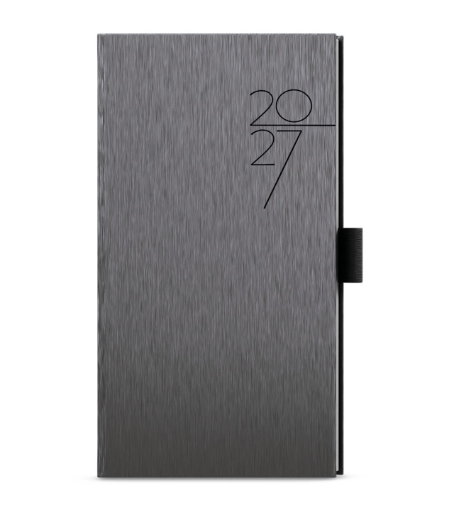 Diář týdenní kapesní -Jakub - ForMen - Grey - šedá 2027, Kalendárium: měsíční fáze, roční období, letní a zimní čas, znamení zvěrokruhu, řádkový přehled 2 měsíců, dny a měsíce v 4 jazycích - CS, SK, EN, DE, mezinárodní svátky: CZ, SK, A, D, PL, H, GB, E, F, I, UA; Informační stránky: osobní údaje, přehledný kalendář aktuálního roku a následujícího roku, měsíční plánování aktuálního roku, plán dovolených aktuálního roku, jmenný seznam CZ/SK, mezinárodní svátky, roční plánovací kalendář CZ aktuálního roku, místo pro poznámky; Popis: Kapesní týdenní diář v lesklé šedé barvě se strukturovaným povrchem. Moderní doplněk do každé kapsy. Diář má velký prostor pro poznámky a plánování. s kalendáriem CZ, SK, EN, DE; české a slovenské týdenní jmenné /CZ + SK weekly/CZ + SK wöchentlich