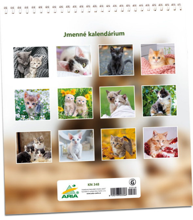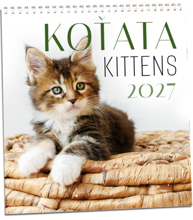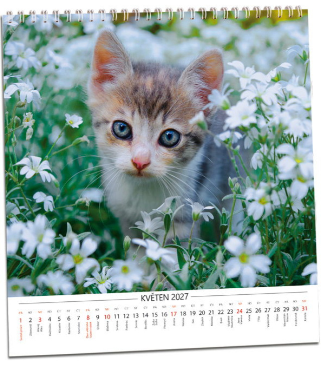 Nástěnný kalendář Koťata 2027, Kalendář má jmenné kalendárium., české měsíční jmenné kalendárium / CZ monthly with CZ names / CZ monatlich mit CZ Namen